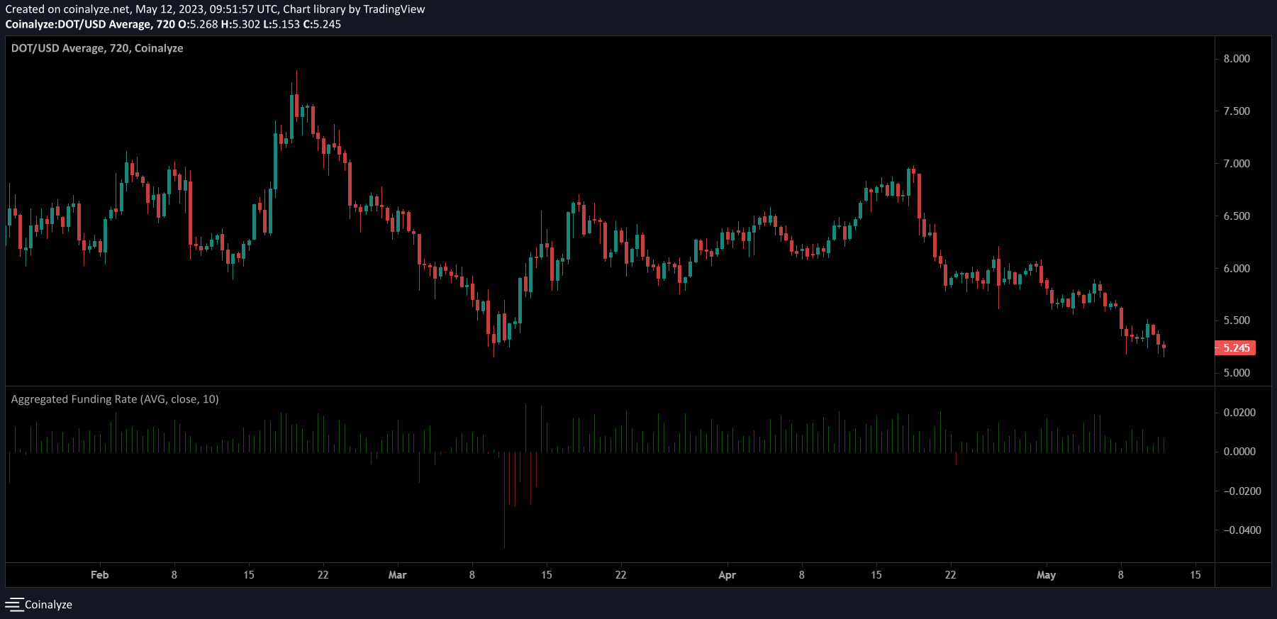 However, the funding rates stayed positive to signal a glimmer of hope for bulls. DOT’s correlation with BTC could determine its next move. A rally for the king coin will offer bulls a unique reversal opportunity again from the $5.2 support level.