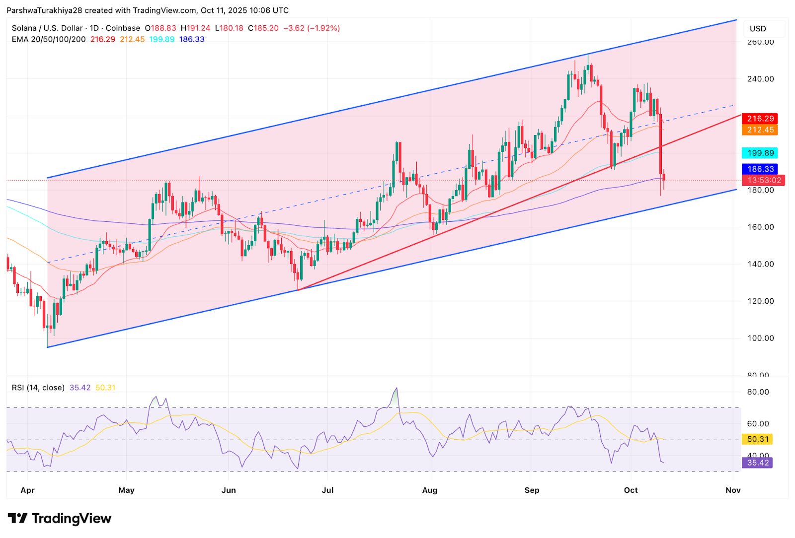 The daily chart shows Solana maintaining its long-t…